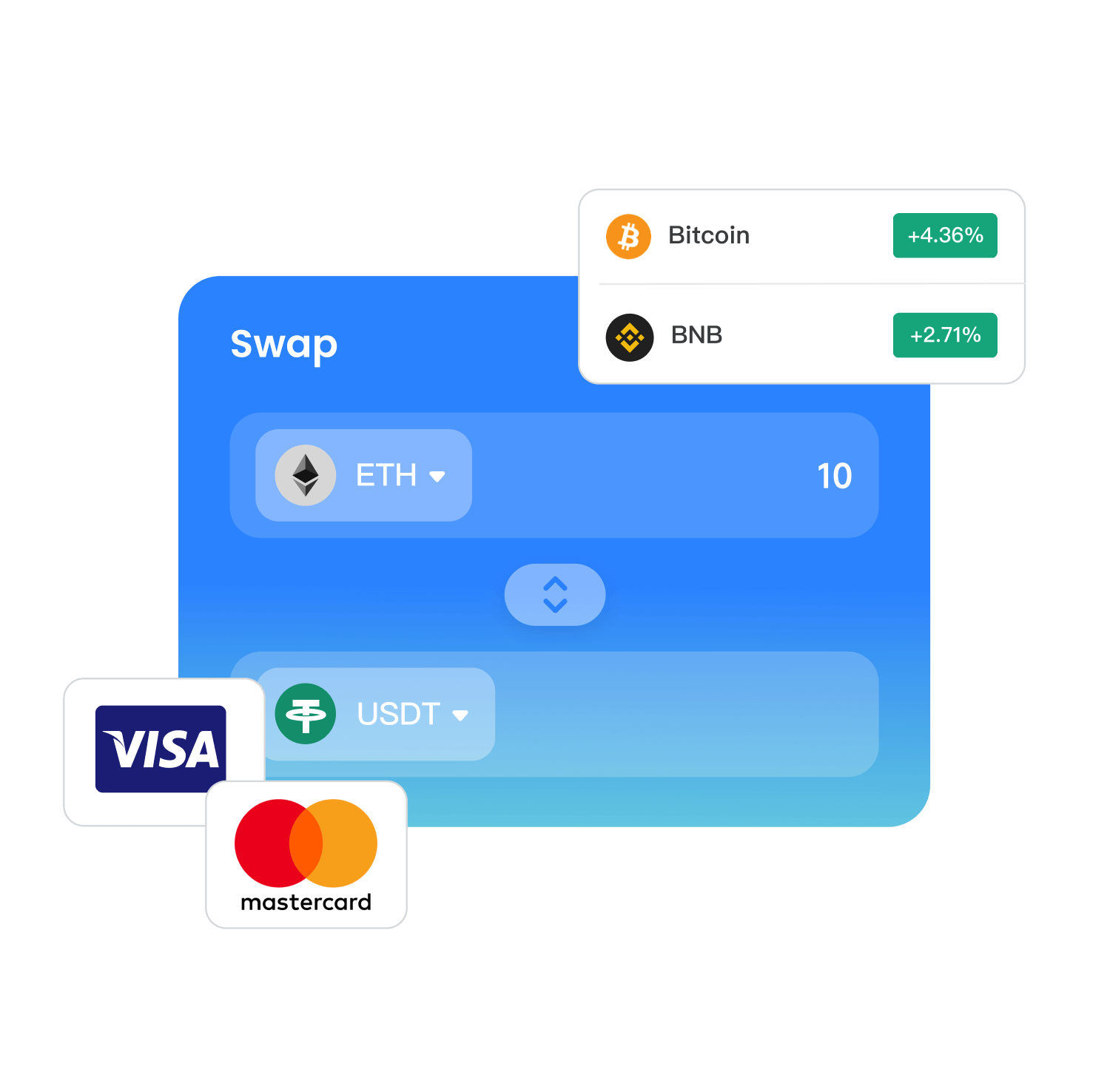 用你的信用卡购入数字资产,轻松存储、发送、跨链与兑换